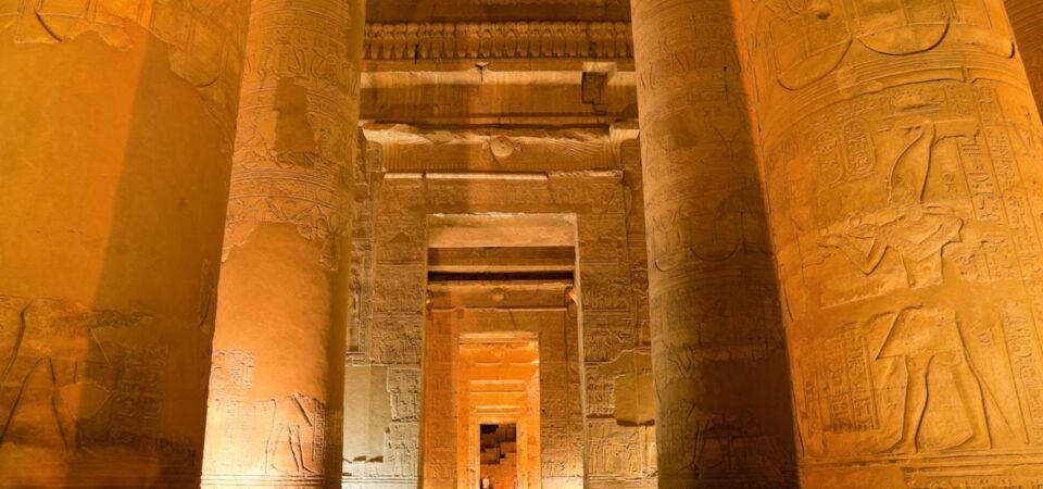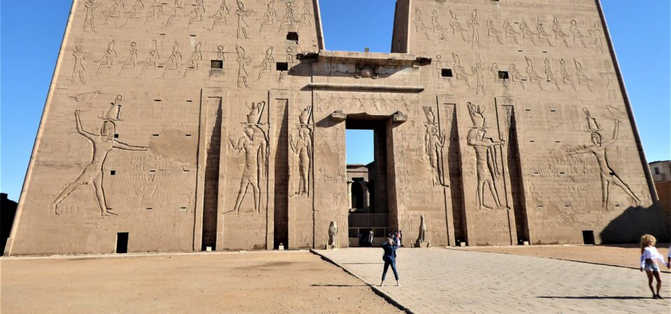 The Temple of Edfu (Temple of Horus): This temple, dedicated to Horus, the avenging son of Isis and Osiris, is also referred to as "Apollopolis Magna" in ancient Greek records. The Greeks equated Horus with their god Apollo. Situated in Edfu, about 109 km from Luxor, the Temple of Edfu is one of Egypt's most well-preserved ancient sites. The temple was completely engulfed by desert sands until its rediscovery in the 19th century, which helped preserve its intricate carvings and grandeur. Its walls and chambers tell the story of Horus, showcasing the artistry and mythological narratives of the period.