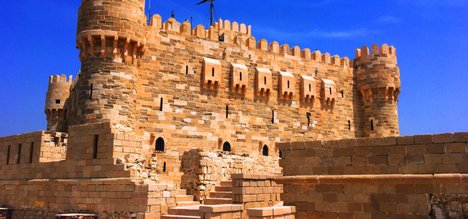 - Citadel of Fort Qaitbey from outside: it’s a mixture between Pharaonic & Islamic histories as the fort is on the original site of the Pharos (It was Alexandria’s ancient lighthouse which built in 279 BC to a height of 12 meters and topped with the statue of Poseidon) & it was built in the 1480’s.